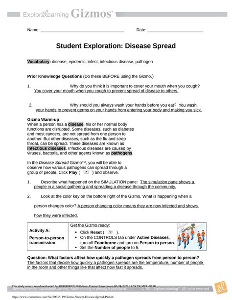FAH - Reading Online STUDENT EXPLORATION DISEASE SPREAD GIZMO ANSWERS KEY Library Binding Internet Archive